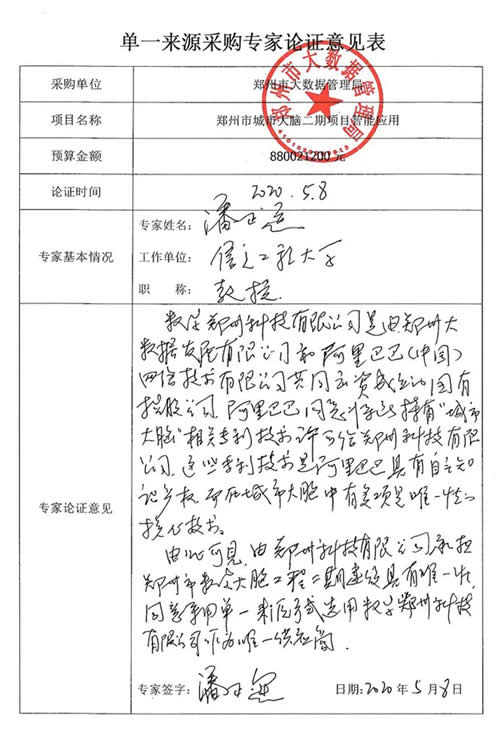 經專家論證,認為本次采購屬於隻能從唯一供應商處采購 情形,我單位擬采用單一來源采購方式選用數字鄭州科技有限公司作為供應商。