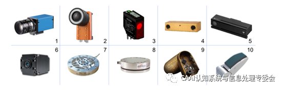 圖2 應用在機器人操控任務中的典型傳感器(1)高速工業相機(2)智能工業攝像頭(3)激光距離傳感器(4)立體相機(5)結構光傳感器(6)飛行時間相機(7)關節扭矩傳感器(8)腕力/扭矩傳感器(9)手指壓力傳感器(10)手指觸覺陣列