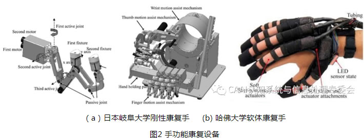 腦卒中、意外事故和老齡化等造成的腦損傷患者數量大幅度增加,由腦損傷引起的手運動功能障礙直接影響患者的生活質量。傳統的治療手段主要依靠康複醫師輔助患者關節活動度和肌力訓練,但其訓練效果受醫生經驗和業務水平及訓練時間等因素的影響。因此有很多研究者研發了相關的康複訓練設備輔助患者訓練以重新獲取肢體的運動技能[1]。