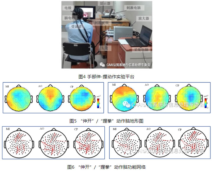 實驗結果表明與伸-握動作直接相關的運動想象和動作觀察相結合的複合範式,增強了與伸-握動作直接相關大腦皮層的激活程度,發現了“伸開”動作對應能量和激活現象均大於“握拳”動作。將運動想象和動作觀察相結合可增強對大腦皮層的激活程度,有助於手部運動功能障礙的恢複。並且將實驗中不同範式下伸-握動作對大腦皮層的激活規律為基礎,提出基於小波變換和共空間模式提取伸-握動作EEG特征的算法,再通過線性判別分析對伸-握動作精細意圖進行識別[9]。