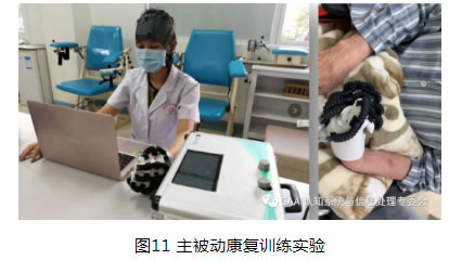 手部主被動訓練係統可分為主動康複和被動康複兩個部分。在主動康複訓練中,對於患者主動意圖的感知有兩種:一種是在多範式刺激大腦皮層的基礎上,從增強的EEG 中直接提取單側手部伸-握動作精細意圖的EEG 特征,實現對受試者手部動作的精細意圖感知;另一種是發揮不同模式如EEG、眼電圖(Electrooculogram,EOG)和肌電圖(Electromyogram, EMG)模式的優勢,構建多模式協同控製策略以產生更多的控製指令。在被動康複訓練中,通過主動運動意圖產生的控製指令或直接輸入指令對軟體康複手進行驅動控製,實現軟體康複手輔助手部執行康複訓練或進行日常生活。實驗驗證了係統輔助患者在線被動康複訓練,通過正常受試者在線控製康複機械手輔助執行伸-握動作,其平均正確率達到92.71%,基本滿足主被動康複訓練的要求,也提升了主被動康複係統的實用化水平。同時,該手部主被動康複訓練係統成功在多家醫院和兩家企業進行康複試用。
