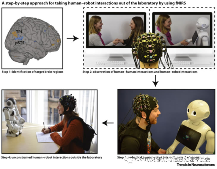 在現實世界中,可以采用逐步的方法來實現實驗室之外的不受約束的人機交互。第一步是識別與社會認知過程相關的大腦區域,如之前的發現;隨後,基於屏幕的研究探索了這些區域在觀察人人和人機交互過程中的參與情況;第三步是在實驗室環境中與機器人進行相對不受約束的交互;最後一步是允許在日常環境(如學校和家庭)中與機器人進行具體交互。每一步的結果都可以為下一步使用的方法和分析提供信息。