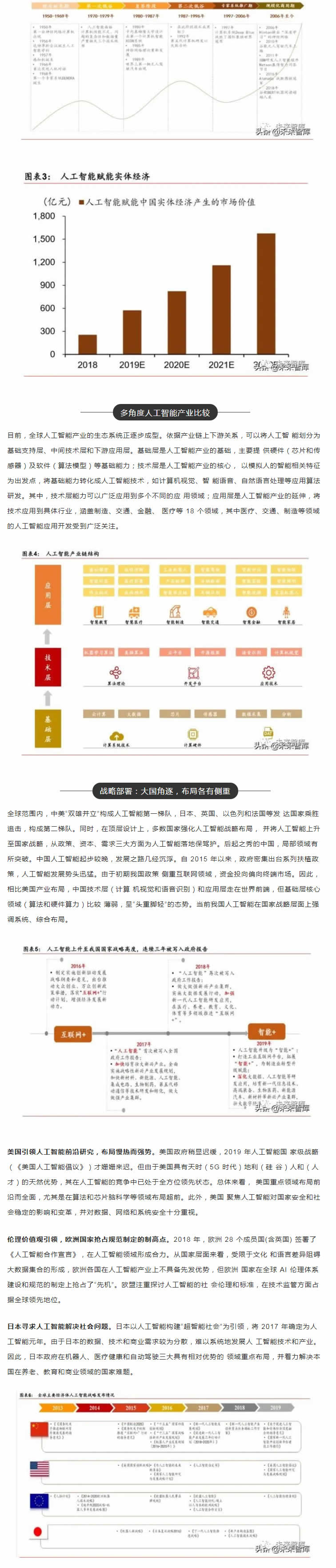 從中短期看,技術優化、落地場景的開拓和滲透是是最主要的增長點;從長期看,智能生 態體係建設才是彎道超車的必由之路。人工智能產業的核心競爭力在於生態體係的建設, 包括大數據、算法理論、底層技術、應用生態、人才儲備等層麵。而我國人工智能產業生 態和基礎設施建設正處於探索期,如何實現核心技術的突破和拓寬人工智能技術與社會經 濟融合場景著力點在於人才儲備和持續的研發投入。從人才的角度,收窄技術差距的根本 在於優化人的知識結構和能力。當前政策應側重建立人才培養體係,為人工智能打造人才 資源池,尤其是在基礎學科領域突破人才瓶頸。同時,打破“唯數量論”的科研評價和考 核體係,改變人才激勵機製勢在必行。我國人工智能專利申請和科研產出數量全球領先, 但質量堪憂。唯有從源頭改變評價機製,才能扭轉“量多而質優”的問題。從研發的角度, 企業技術優化和創新能力是解決產業痛點的關鍵。基礎研究的投入周期長、不確定性大、 和風險高特點決定了其難以短期內獲得投資回報,但基礎領域的突破將為經濟帶來長期和 廣泛的溢出效應,因此,國內更應關注底層技術的研發投入,扭轉傳統技術路徑,顛覆核 心技術受製於人的被動局麵。此外,人工智能在賦能機器模擬人類進行決策的同時產生的 倫理道德、隱私保護和社會安全問題值得關注。由於法律法規存在滯後性,尚無法對人工 智能技術進行有效監管。我國應加快人工智能倫理研究,及早識別人工智能治理風險。