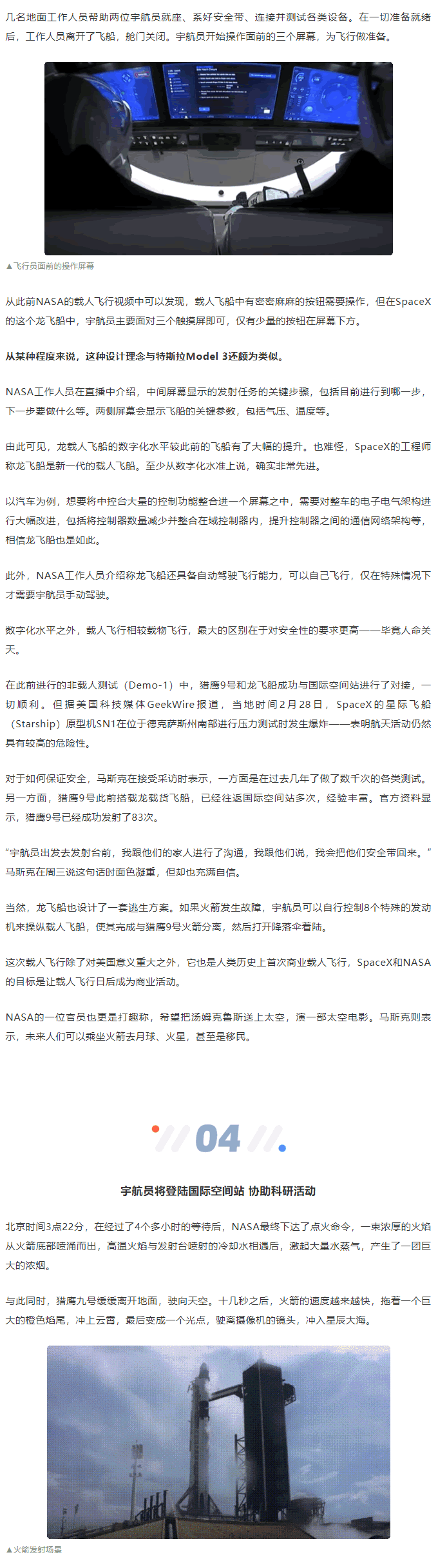 這次載人航天任務,被稱為獵鷹9號火箭龍載人飛船二次測試任務(Falcon 9’s launch of Crew Dragon’s second demonstration ,Demo-2),宇航員進入太空後,會搭乘龍飛船前往國際空間站,完成相關的任務後,兩位宇航員則將繼續乘坐龍飛船返回地球。