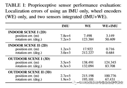 表I顯示,當IMU和車輪編碼器融合在一起時,運動估計效果顯著提高。