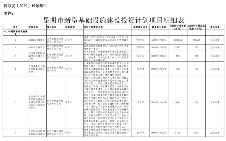 雲南省已梳理形成了第一批“新基建”項目清單,謀劃項目665個,項目總投資3776億元。各級政府連續3年每年統籌安排100億元,其中省財政每年安排10億元,用於支持新型基礎設施建設