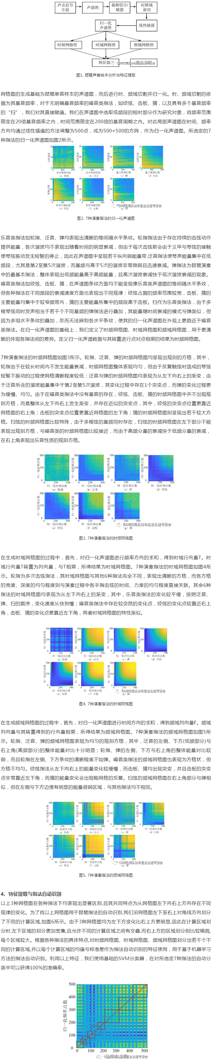 在人工智能方法飛速發展的今天,對樂器的演奏指法的自動分析在樂曲的檢索、鑒賞引導、演奏輔助學習等方麵均具有重要意義。琵琶作為一種中國傳統樂器,對其進行自動分析的已有工作大多集中於對琵琶聲音的算法合成方麵的探討[1-3],而在指法自動識別、分類方麵涉及很少。在我們的工作中,提出了對琵琶不同指法所產生的聲音具有明顯區分度的網格圖特征,用於對幾種典型的琵琶演奏指法進行基於機器學習的自動識別。
