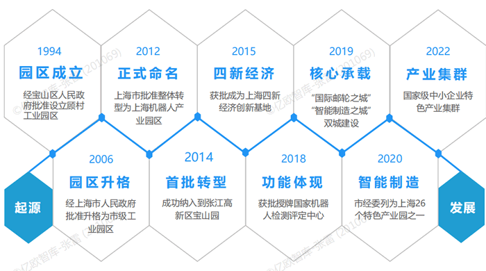 上海機器人產業園位於寶山區顧村鎮,前身為寶山區顧村工業園區,成立於1994年,總占地3.09KM2。2012年經上海市經信委批準掛牌上海機 器人產業園,是上海首家以機器人命名的園區,也是距離上海市中心最近的104工業園區,2020年成為上海首批26個特色產業園之一,2022年 成為國家工信部中小企業特色產業集群之一。