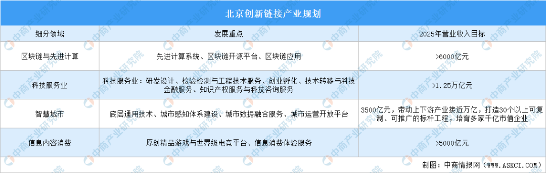 區塊鏈與先進計算:聚焦算力、算法、算據三大領域,發展先進計算專用芯片等算力新器件,強化智能算法體係結構,提升算據字節量,重點布局海澱、朝陽等區,支持區塊鏈與先進計算和工業互聯網、車聯網、電子商務、人工智能等領域融合應用,力爭到2025年區塊鏈與先進計算產業實現營業收入超過6000億元。