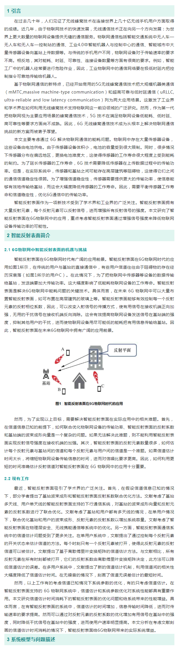 在未來6G無線蜂窩通信網絡中,基站需要為分布在各個角落的海量物聯網設備提供無縫連接。受限於位置因素,很多物聯網設備與基站之間的通信鏈路由於障礙物的阻擋變得不可靠,這對於在6G時代實現物聯網萬物互聯是一大阻礙。為了解決該難題,分析了在6G物聯網中使用智能反射表麵這一新技術以增加用戶信號在基站端強度的可能性。具體而言,在考慮信道估計開銷的前提下,聚焦物聯網設備上行通信傳輸功率最小化問題。一方麵,在配備中小規模天線的基站係統中,提出了迭代算法以聯合優化用戶傳輸功率、智能反射表麵反射係數和基站波束成形。另一方麵,在配備大規模天線的基站係統中,提出了具有閉式表達式的用戶傳輸功率、智能反射表麵反射係數和基站波束成形設計以降低其應用複雜度。仿真結果驗證了智能反射表麵在6G物聯網中增加網絡連接能力的巨大潛力。