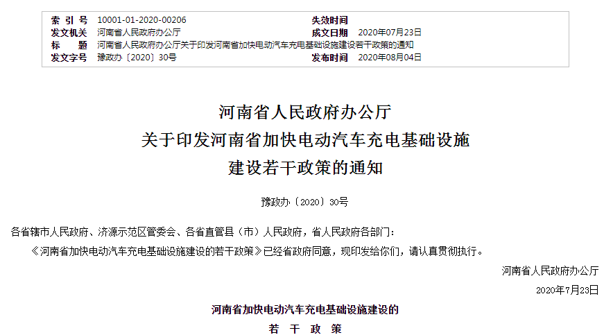 近日,河南省人民政府辦公廳印發了《河南省加快電動汽車充電基礎設施建設的若幹政策》,明確提出到2025年,全省累計建成集中式充換電站2000座以上,各類充電樁15萬個以上。