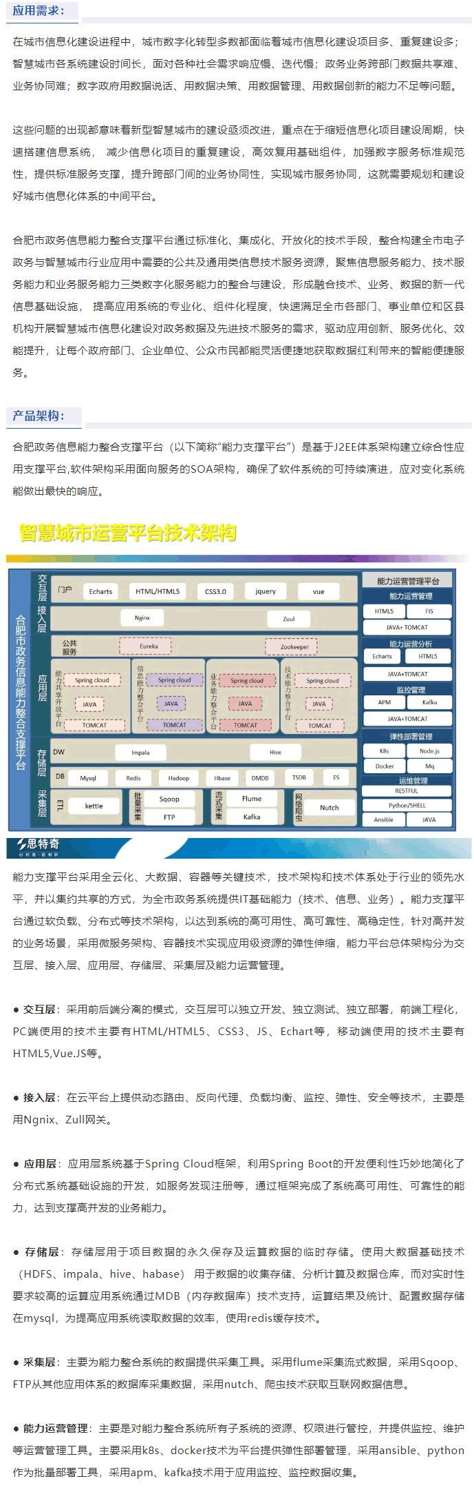 合肥市政務信息能力整合支撐平台已經建成集中麵向全市智慧城市各類行業應用的信息、業務、技術服務資源的統一運營管控平台,支撐各類城市信息技術資源共享利用,整合和新建各類信息技術服務資源,建立統籌推進、共建共享的數字化服務支撐體係。目前已完成包括一碼通域、智慧人才、不動產登記在內的18類應用的快速支撐。