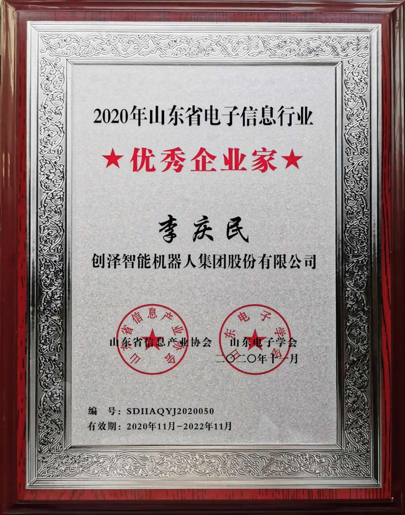 評審專家從工作經曆、榮譽資質、企業經營等方麵進行初審、複審後,創澤集團董事長李慶民榮獲“山東省電子信息行業優秀企業家”榮譽稱號。