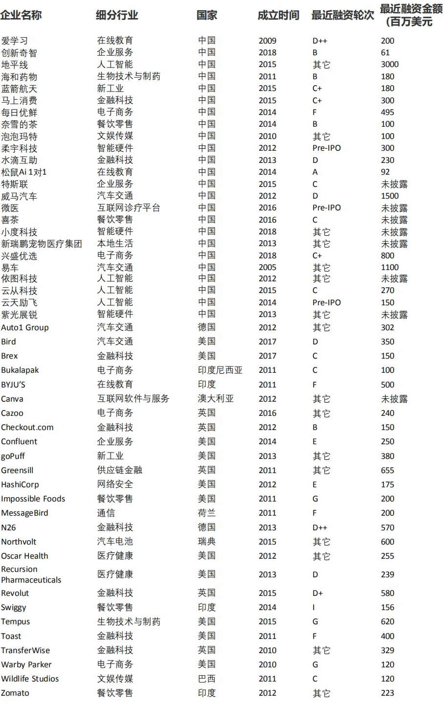 100家公司中,醫療保健,企業服務,製造,硬件和電子商務在行業方麵排名前五,分別囊括18、17、16、12、8家企業,2020孕育了最多的醫藥公司