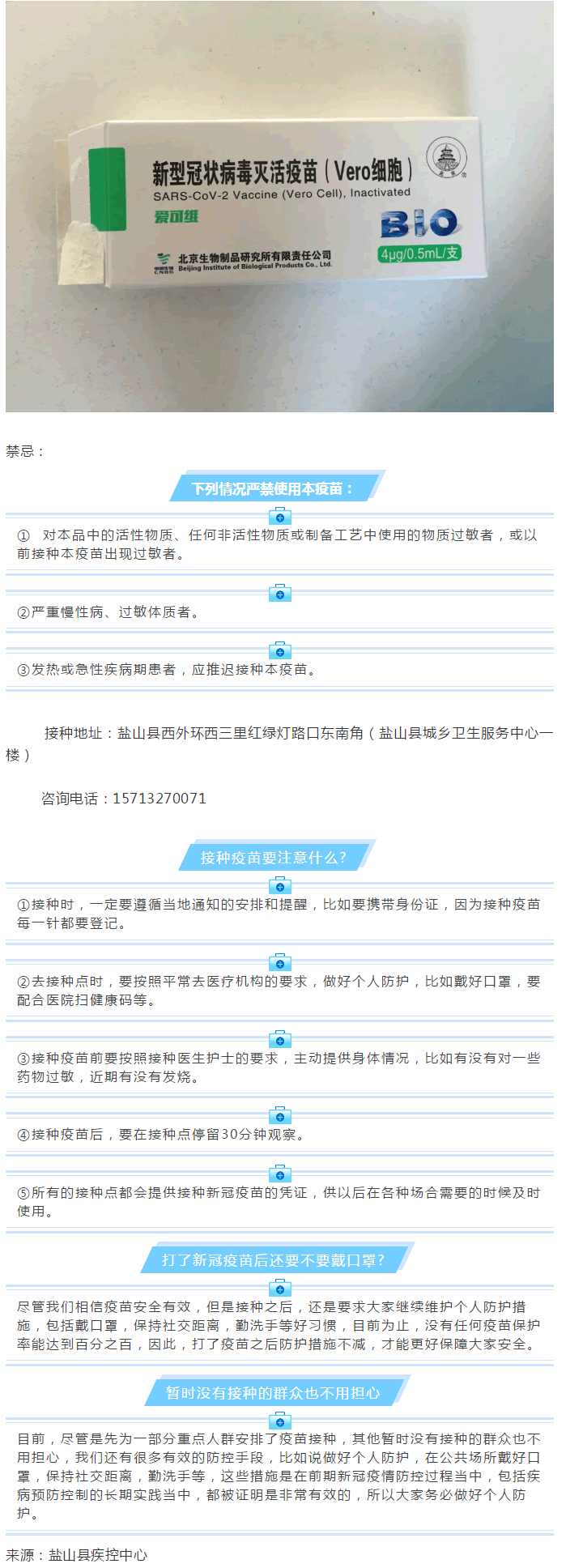 本次接種的疫苗來自北京生物製品研究所有限責任公司,需接種兩針,間隔14-28天。