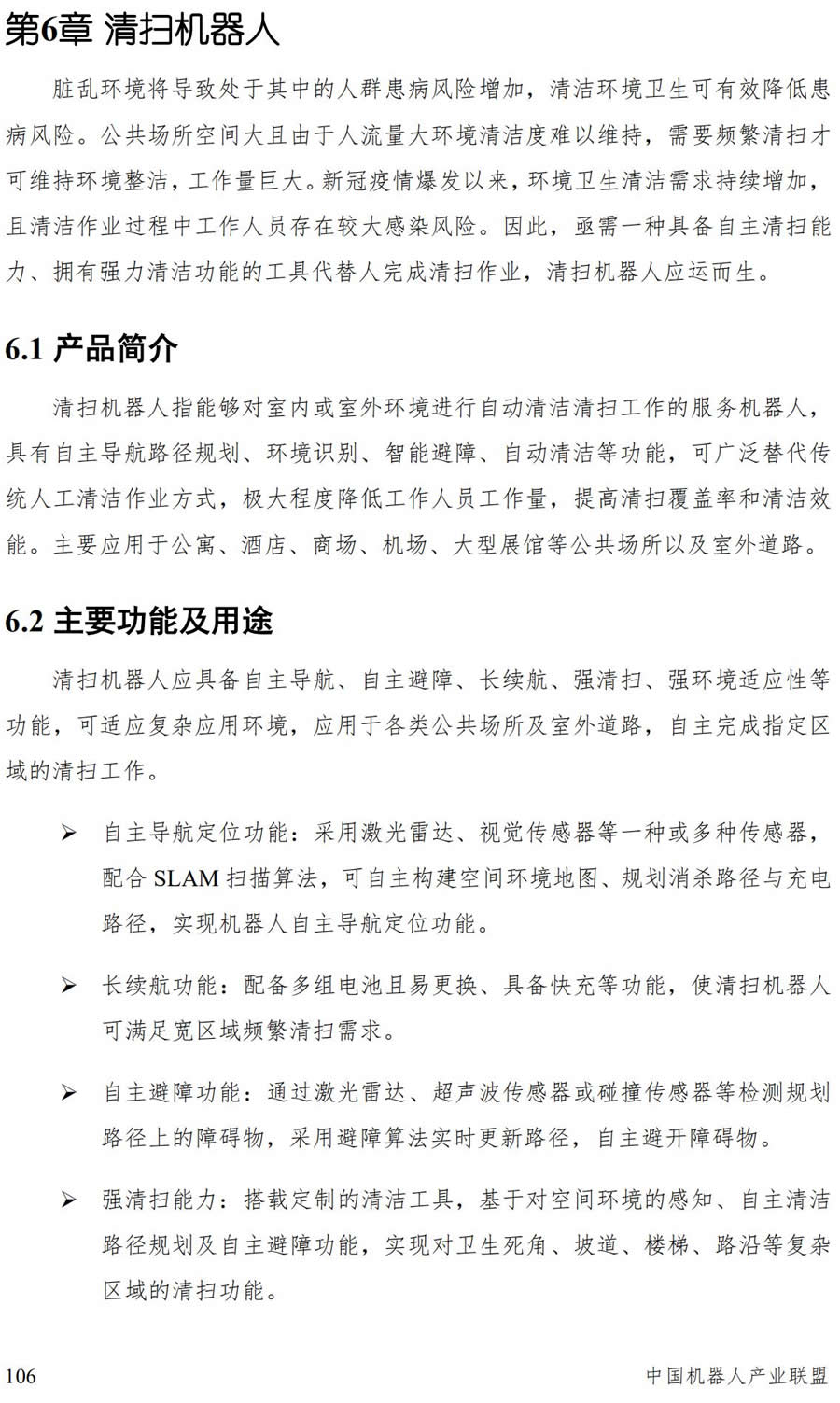 隨著我國經濟水平的不斷提升,城市化建設進度不斷推進,以需求驅動資金注入環衛行業,促進清掃機器人技術水平提高,持續助力服務機器人產業高質量發展。一是“機器替人”需求不斷提升,老齡化社會與新生代快節奏生活工作方式使清掃機器人長期處於剛需狀態,解決人力成本攀升和勞動力不足問題;二是消費升級推動行業需求增長,人工智能技術與環衛領域結合日漸緊密,清掃機器人成為推動環衛服務高質量發展的重要動力;三是產業化發展促使成本持續降低,清掃機器人造價目前正以每年 10%的速度遞減,加快“機器換人”步伐,解放生產力,加速清掃機器人在勞動力密集型或高風險型作業環境的全麵應用進程;四是技術革新加速產品應用落地進程,環境感知、運動控製、人機交互、多機與人機協作、雲計算、大數據等技術注入加速技術創新與產品成熟應用步伐,為新一代服務機器人發展帶來產業機遇。