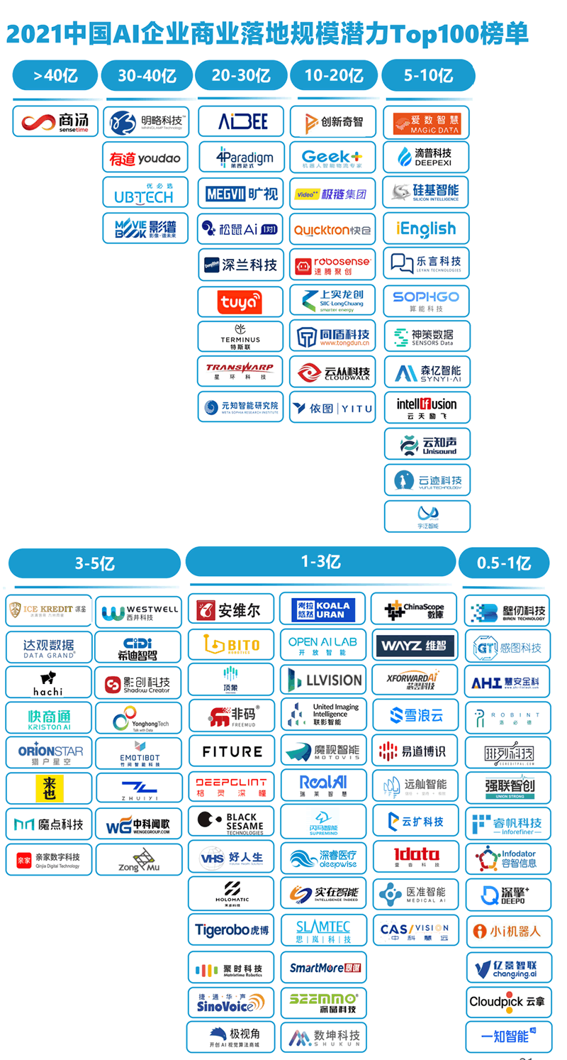 特斯聯,雲天勵飛,安維爾,曠視,雲知聲,滴普科技,商湯科技,明略科技,雲叢科技,睿凡科技,深蘭科技,依圖,模點科技,元知智能研究所