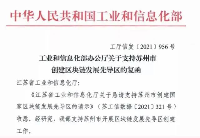 區塊鏈作為我國 核心技術自主創新的重要突破口 被列為國家“十四五”規劃《綱要》 七大數字經濟重點產業之一 近日,工信部正式複函 支持蘇州創建全國首個區塊鏈發展先導區