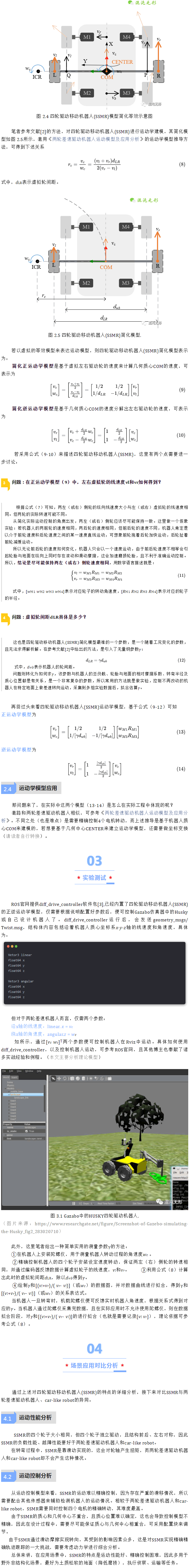 本文從四輪驅動移動機器人(SSMR)的運動機理分析其運動規律,建立了四輪驅動移動機器人(SSMR)的運動模型,並深入分析了SSMR獨有的運動特性。基於上述分析,將SSMR簡化為兩輪差速驅動機器人模型,推導了SSMR的較為完整運動控製模型,給出了重要參數計算的實驗方案。從運動性能等方麵分析了SSMR與car-like robot、兩輪差速驅動機器人的異同之處,並說明SSMR的適用場景。