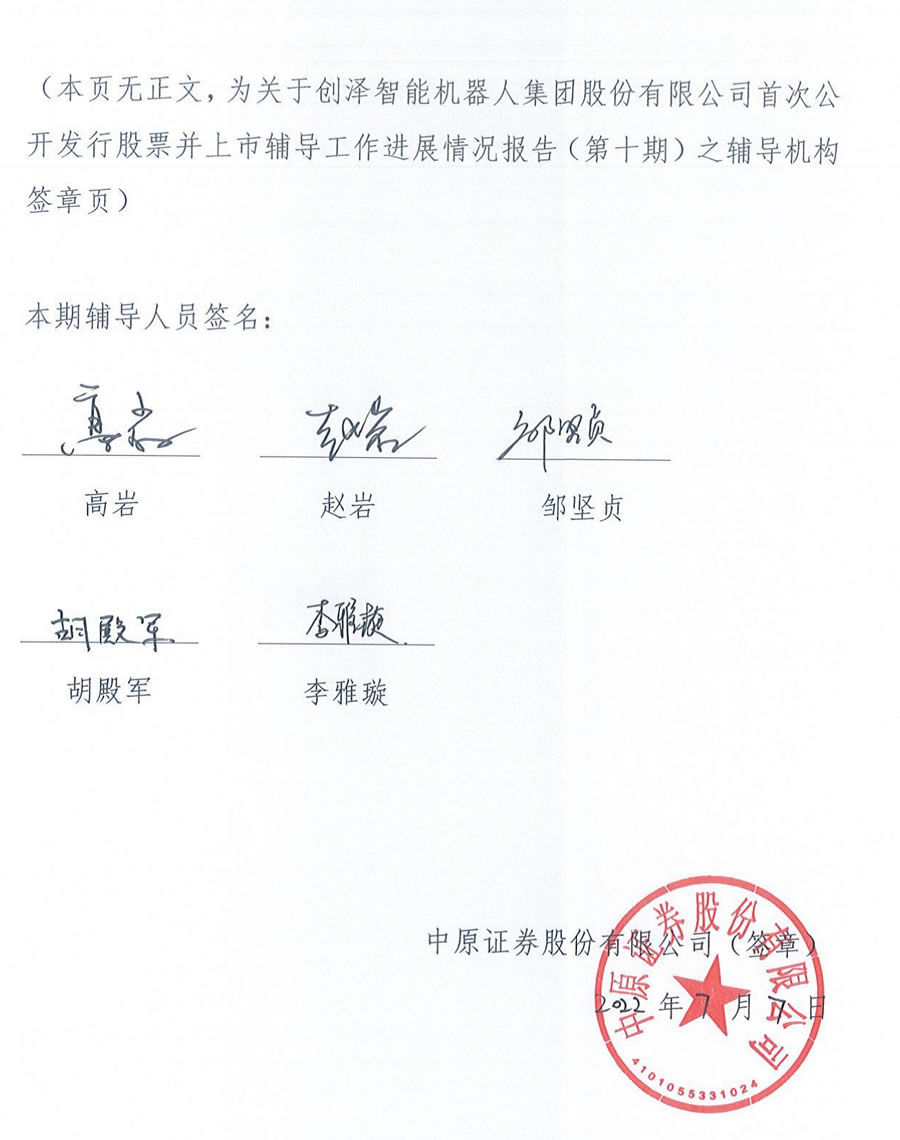 本輔導期內,中原證券參與輔導工作的人員為高岩、趙岩、鄒堅貞、胡殿軍、李雅璿,其中高岩先生擔任組長。本輔導期內輔導人員未發生變動。