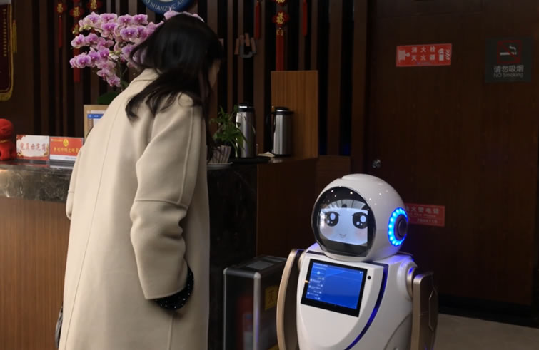 酒店全天24H的前台服務人員輪班,業務與問詢交叉,人力成本難降低,且要求人員內心承受力強、服務有耐心。 智慧酒店前台機器人“小智”可根據不同入住時段設置接待歡迎語,主動打招呼,語音問答服務,設置酒店常用地點庫,提供引領服務,還可介紹酒店宴會場地、包餐菜單等內容,獲取周邊美食、景點、交通情況等。 並且保證了講解標準化、統一化。