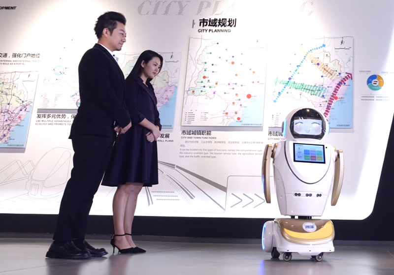 智能迎賓導覽機器人人裝備先進的計算機語音處理係統,其自身配備了自然語音庫和行業專業語音庫,可適性強,適用於各年齡段遊客,並且能夠提供準確回複遊客問題,具備學習功能,對遊客提出的問題,通過數據庫進行分析解答。同時機體內還含有探測雷達,機器人可根據探測到的數據,引導通過電腦內部錄入的地圖規劃路線,實現對遊客零失誤引導。