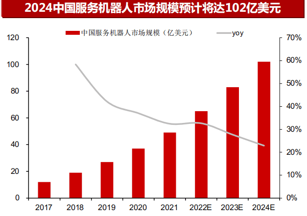 中國機器人2024年有望達251億美元市場規模,2020-2024年CAGR約22%。