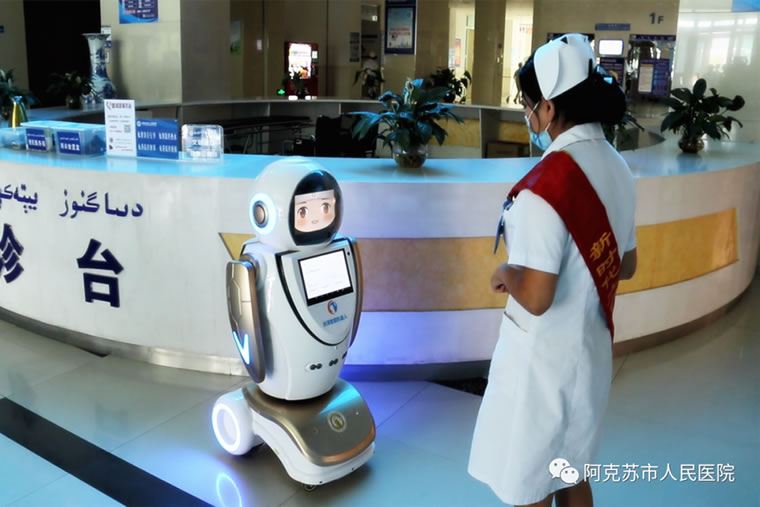 “您好!請問有什麼能夠幫助您的嗎?”近日,在阿克蘇市人民醫院門診綜合樓大廳內,一個長相憨態可掬的智慧醫療機器人--“創創”,一經出現,就瞬間吸引了前來我院就醫患者的眼球。可千萬別小看這個萌萌噠的小家夥,它的作用可大著呢!