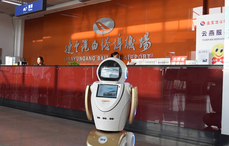 機器人將科技感與機場元素完美結合的實體機器人,具有室內定位、自主導航、定點巡航、尋跡行走、自由行走等功能。在行走過程中,機器人能主動感知周邊環境,實現智能避障。同時,還采用語音和觸屏方式進行人機交互,並依托機器人發布機場重要活動和新聞信息等。