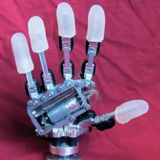 這種氣壓驅動的仿生靈巧手存在兩方麵不足:(1)由於氣壓的控製相對較難導致靈巧手運 動過程中會出現不平穩的情況;(2)氣壓驅動的相關驅動元件體積較大,不便於實現機械 和驅動單元的集成化設計。
